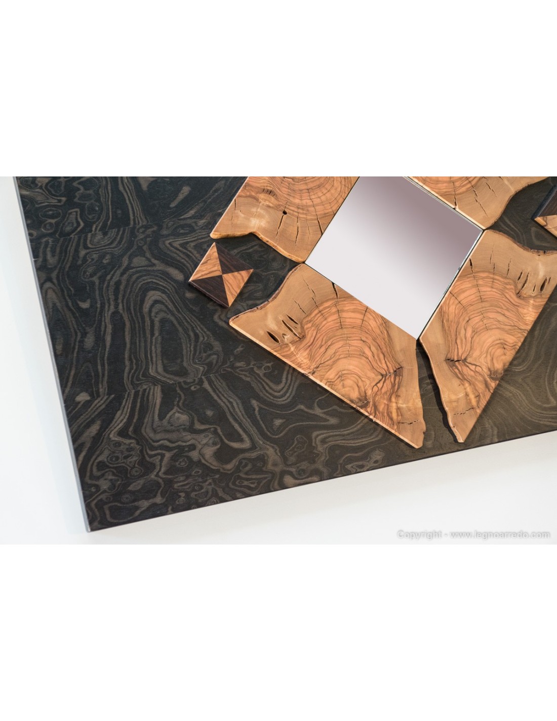 Materiali: ulivo, wengé, pannello tamburato con radica di erable blu