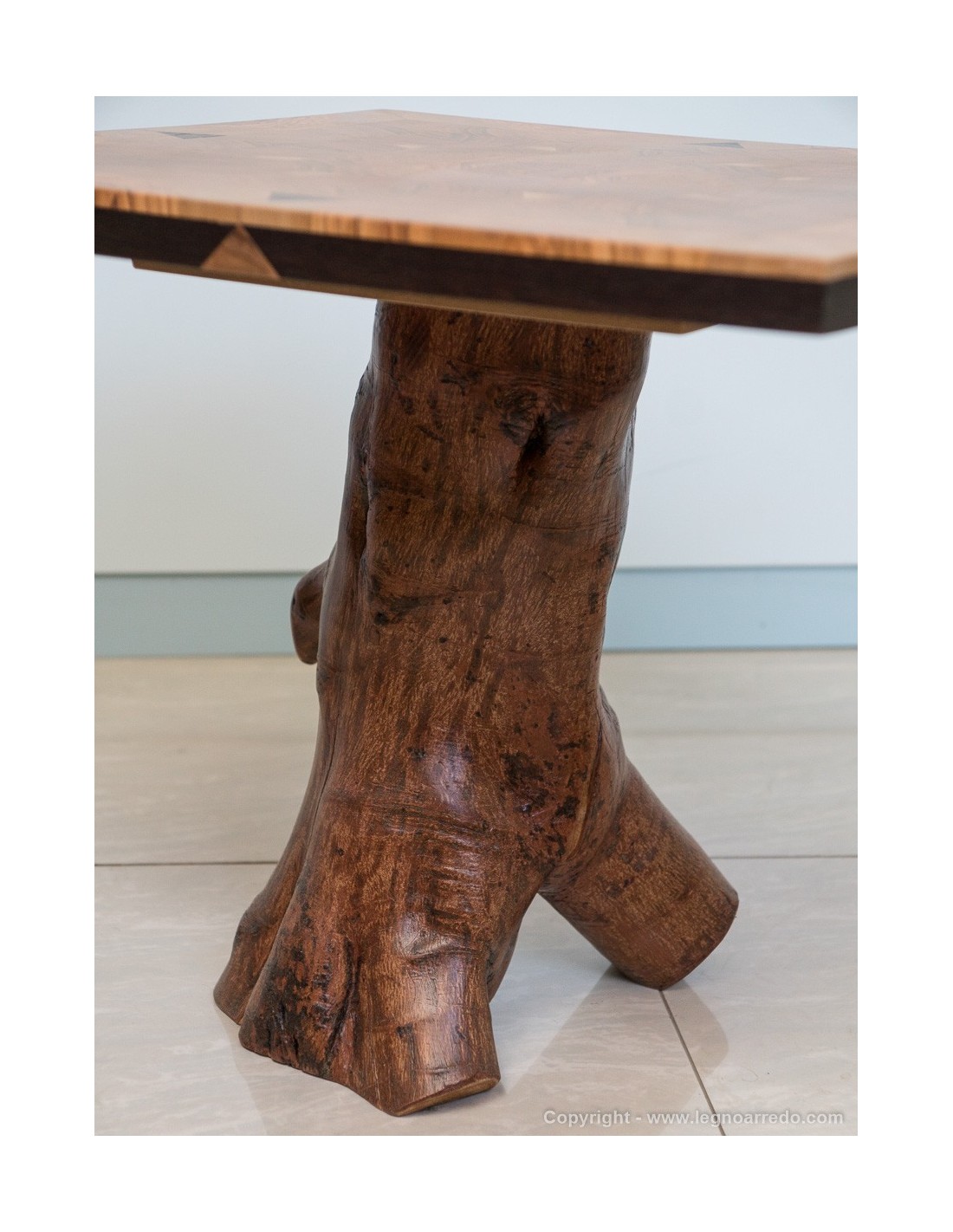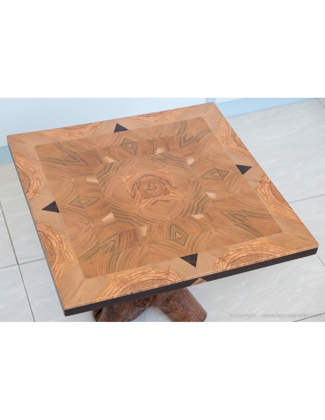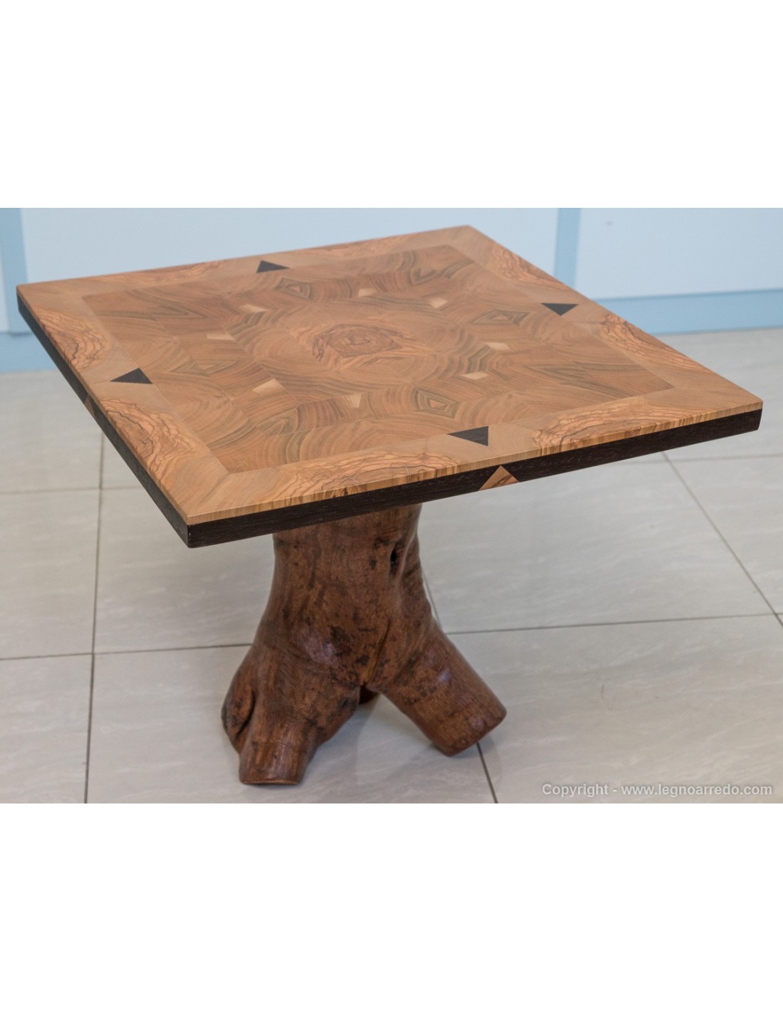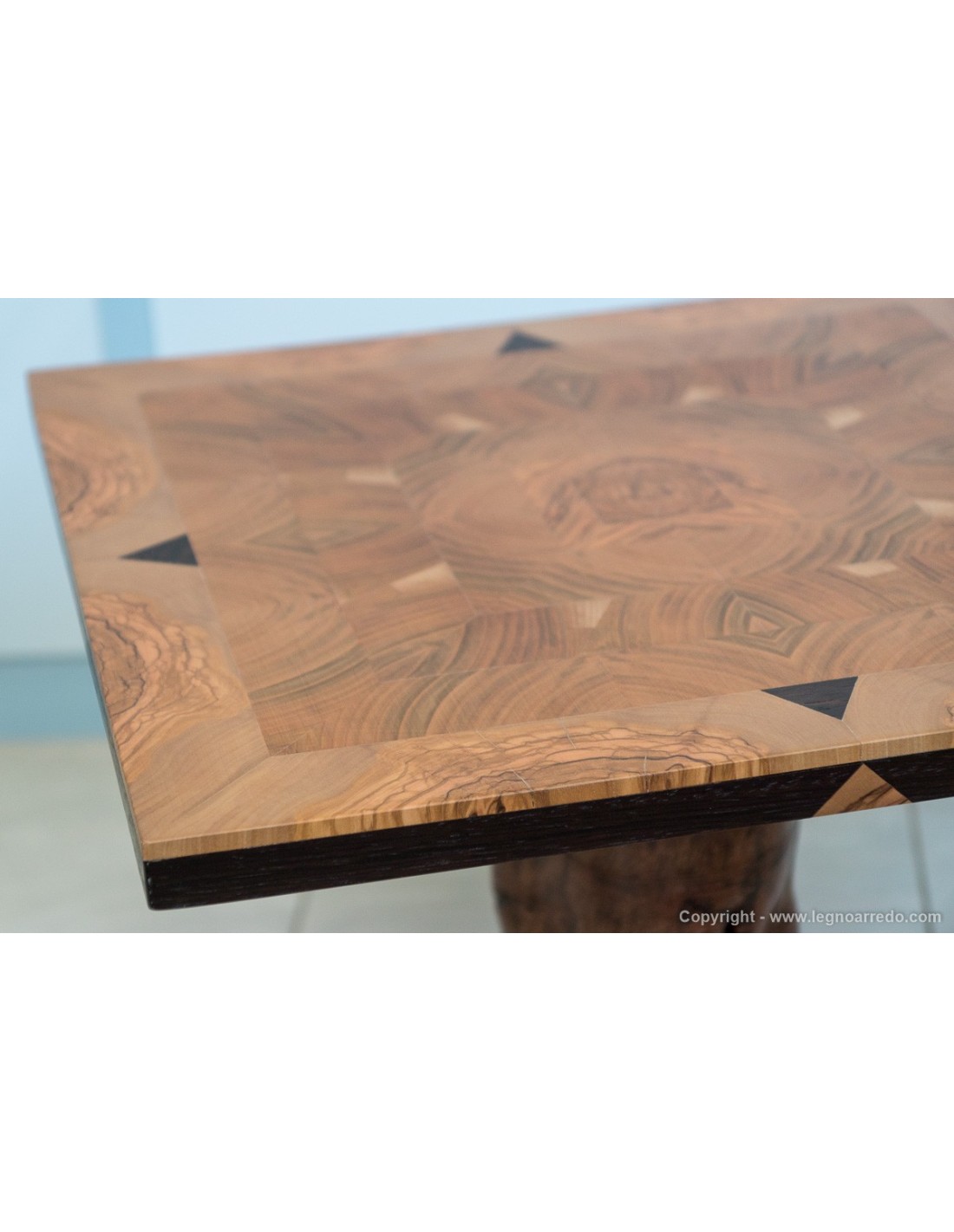 Il piede del tavolo è composto da un unico pezzo di tronco d'ulivo.