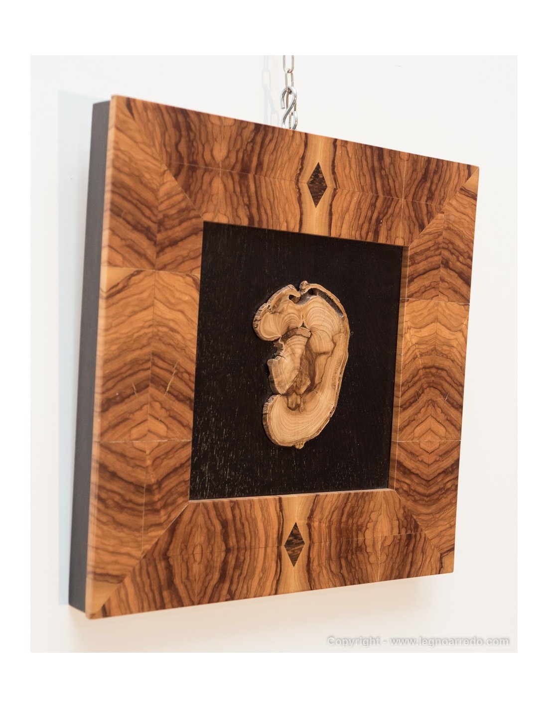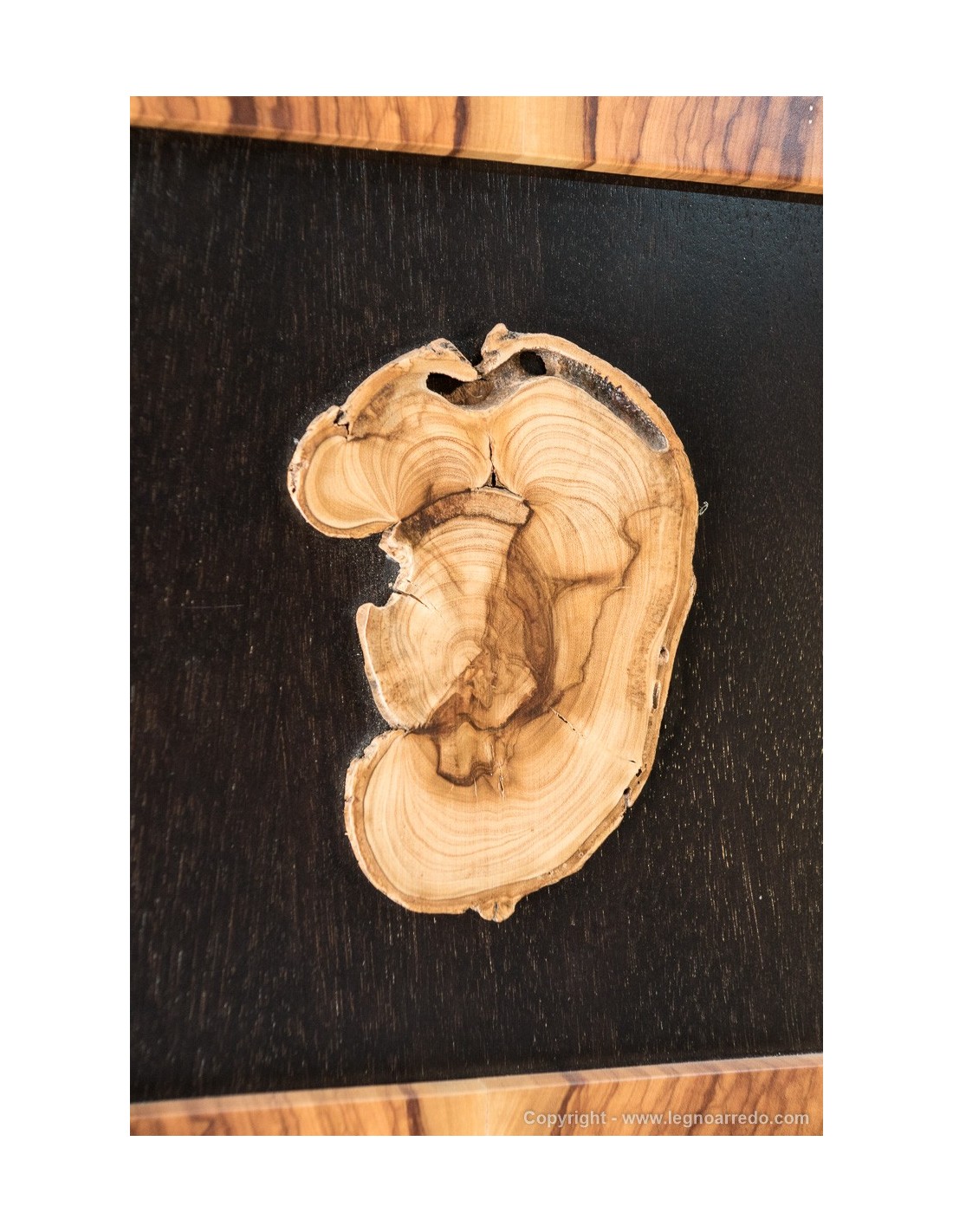 La forma artistica centrale è costituita da una sezione di tronco d'ulivo naturale.