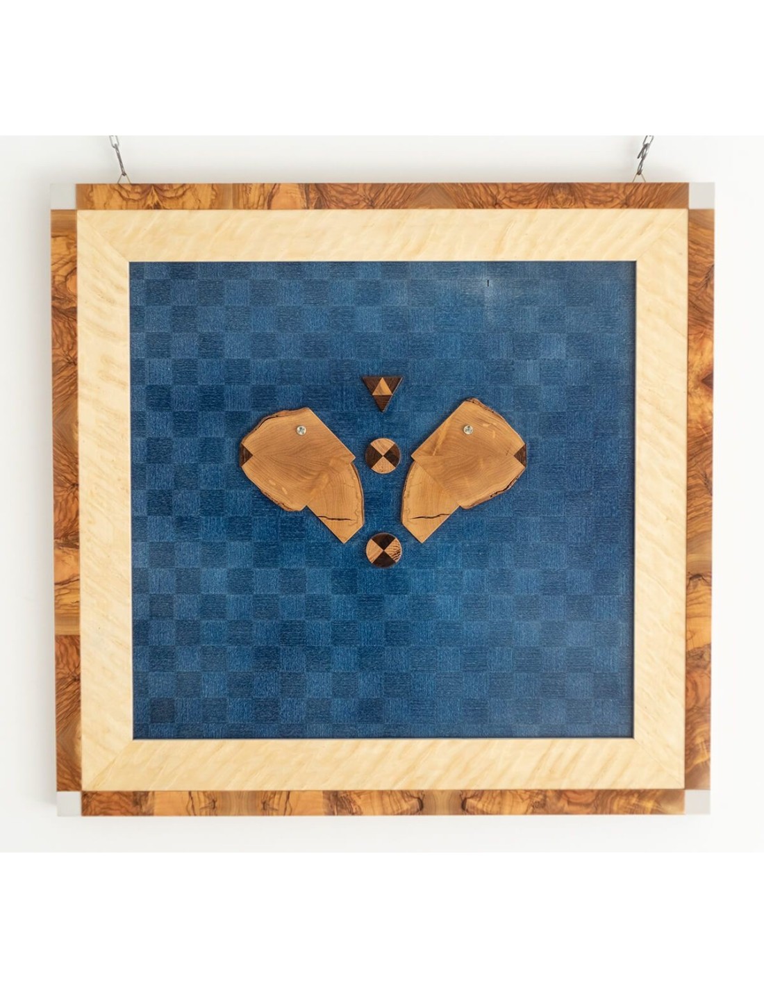 Materiali: ulivo, radica in acero, inserti laminati di acciaio.